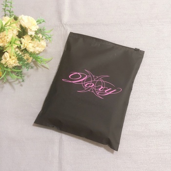 Bolsa con cremallera para embalaje de ropa negra mate personalizada con logotipo rosa